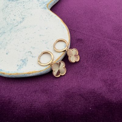 گوشواره طلا ون کلیف عصایی از طلای ۱۸ عیار، وزن ۳.۴۵ گرم. طراحی آویزدار خاص با نماد چهاربرگ کلاسیک. مناسب استفاده روزانه یا مجالس.